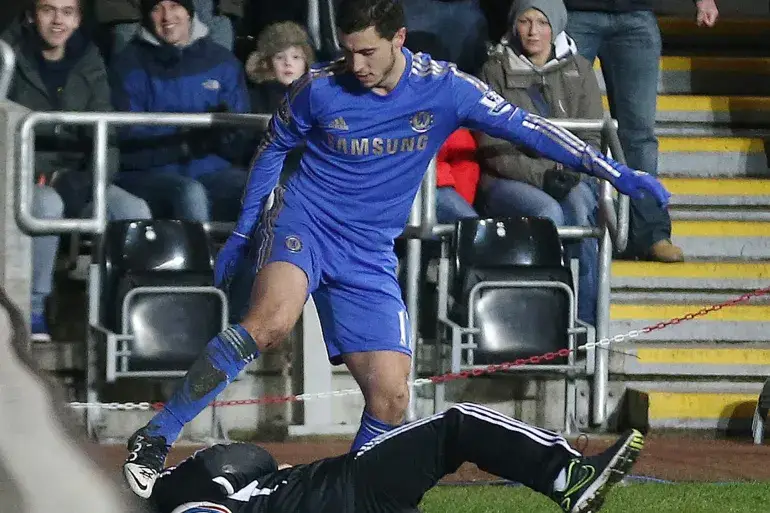 إدين هازارد تلقى بطاقة حمراء بعد ركله جامع الكرات